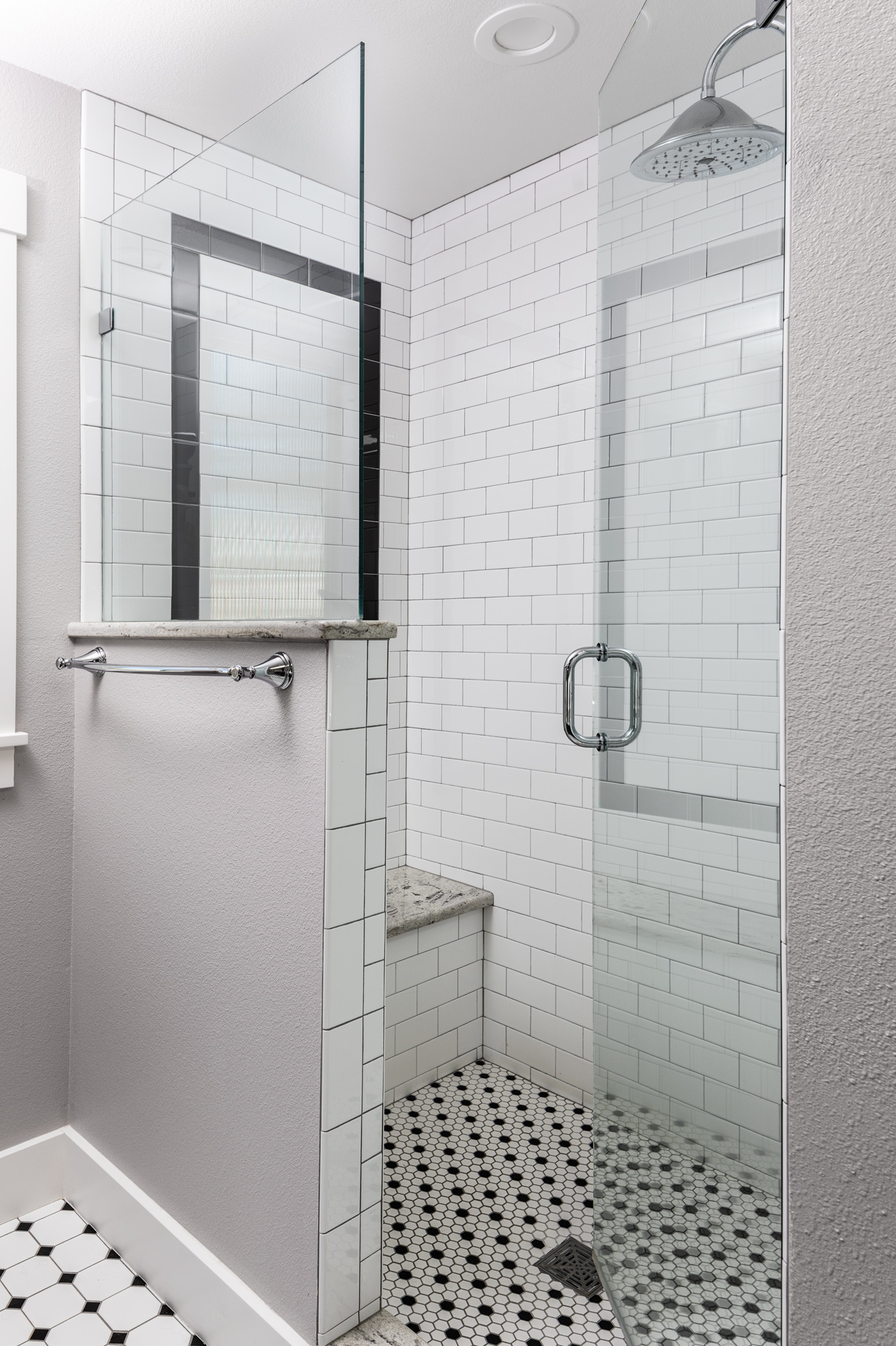 Located in a beautiful, established Fort Collins neighborhood this home was originally built in the 1970s. Before the renovation, the rooms felt disconnected and closed-in. We began by opening up the Kitchen to the Breakfast room and Living area. We opened up the stairs to the basement to create an open Entry area with a view focused on the Living area. For the Kitchen remodel, new wood cabinets, granite countertops, tile backsplash, and finishes were installed. In the Master suite, we combined the existing closet and bath to create a larger bath with laundry. The Master Bath renovation included a new custom walk-in shower, new wood cabinets, granite countertop, subway tiles with gray grout, new laundry area with front loading washer and dryer and a heated floor. A large closet was created by enclosing an existing, unused courtyard space.